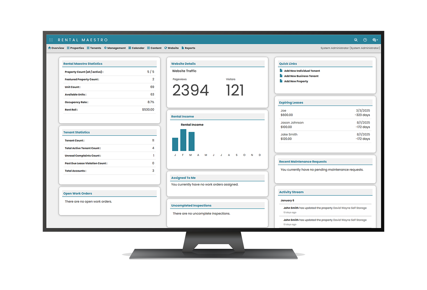 Rental Maestro is powerful set of online property management tools. With a variety of configuration options, it can be used to manage residential, commercial or a combination of real estate types.